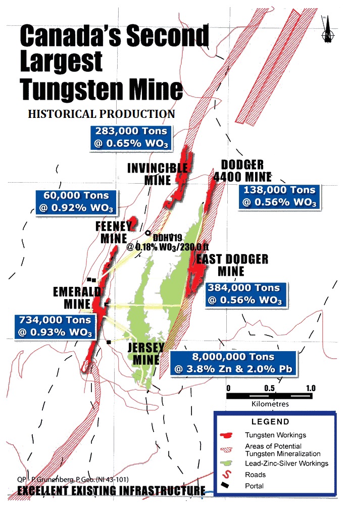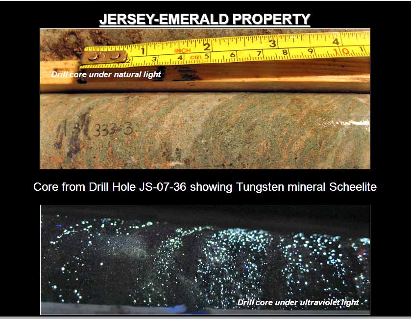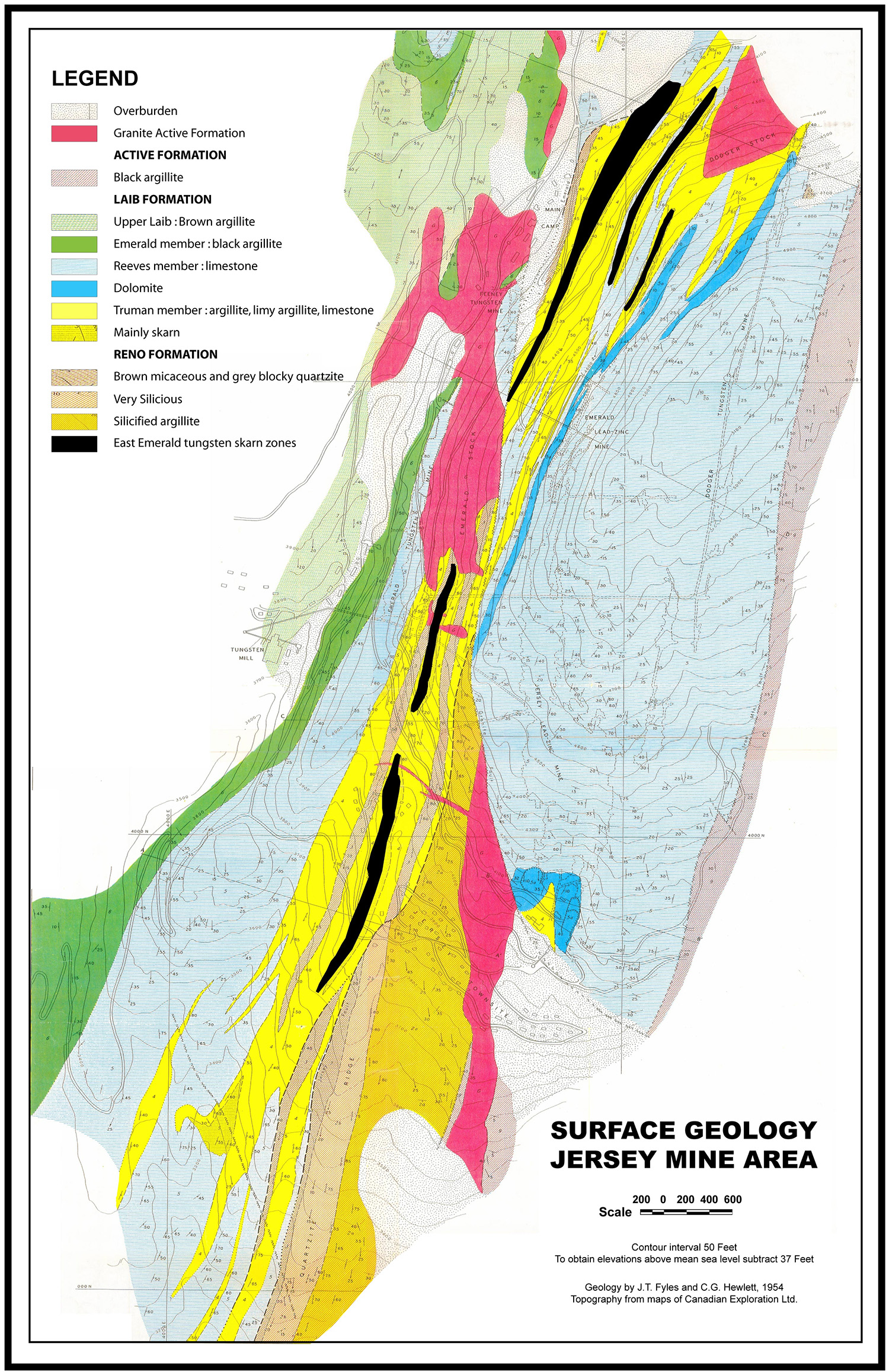 The Jersey-Emerald property has exceptional infrastructure. The deposits are just 45 kilometres by highway from Teck’s Lead-Zinc Smelter facility at Trail, BC. A skilled labor force for mining and exploration is available in the nearby towns of Salmo, Nelson, Trail and Castlegar. Salmo was the townsite for the former tungsten-zinc mines. There are power lines and a natural gas pipeline crossing the property.
